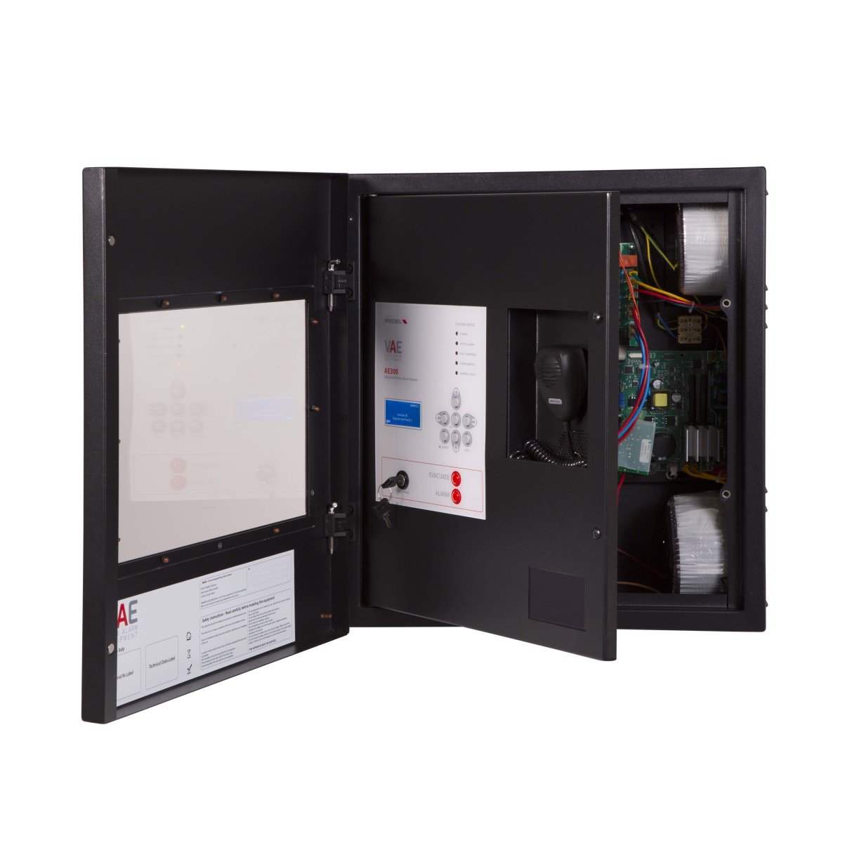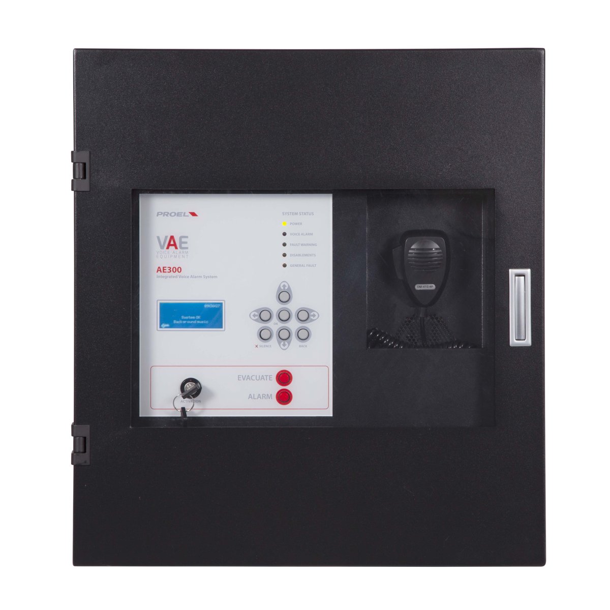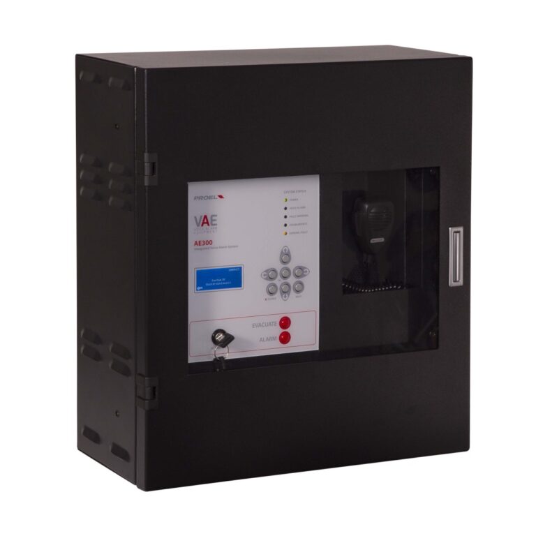 Sistema di allarme vocale All-In-One certificato EN54-16 completo di pacco batterie di backup con circuito di ricarica e test EN54-4. Amplificatore principale e di riserva in classe D “Pure Path”™ 300W @ 100V su linea altoparlanti ridondante (A + B). Il sistema garantisce prestazioni complete a piena potenza anche con alimentazione di backup. Circuito di processamento mediante DSP; ingresso musica di sottofondo bilanciato e isolato, ingresso microfonico isolato dotato di alimentazione phantom 48V selezionabile e attivazione della priorità mediante contatto; ingresso monitorato per postazioni di chiamata d’emergenza remote; pannello frontale equipaggiato di: altoparlante monitor, microfono PPT di emergenza monitorato, tasti di invio diretto dei messaggi, tasti di navigazione , ampio display a matrice di punti LCD e chiave di attivazione utente; uscita di linea; messaggi audio memorizzabili su uSD 16 bit 48Khz: 8 messaggi di uso generale con attivazione da contatti di ingresso dedicati o da scheduler incorporato, 2 contatti monitorati per attivazione annunci di emergenza..