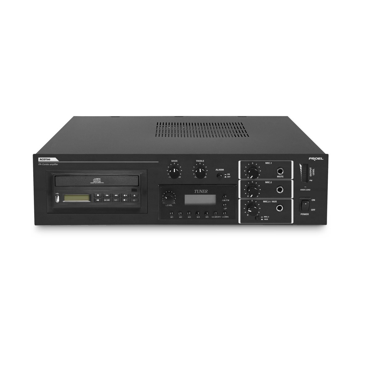 Il dispositivo è stato specificatamente progettato per la trasmissione di annunci microfonici e/o programmi musicali in tutti i sistemi PA. Ingresso MIC1 con funzione di priorità automatica, attivabile anche con base microfonica BM100 ed adattatore AT290. Esso integra in un unico case un sofisticato ed affidabile amplificatore da 90W RMS, abbinato ad un tuner AM/FM digitale ed un lettore CD/MP3 affidabile ed adatto al servizio continuo. Il sistema integra inoltre una interfaccia USB per flash pendrive. Il tutto è completato con un sistema di preamplificazione MICRO/LINEA.