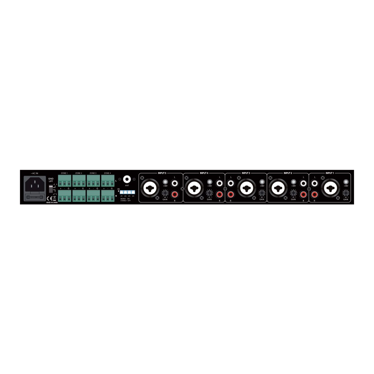 | Input Connectors CH1~CH5 | COMBO (XLR + JACK 6,3) |