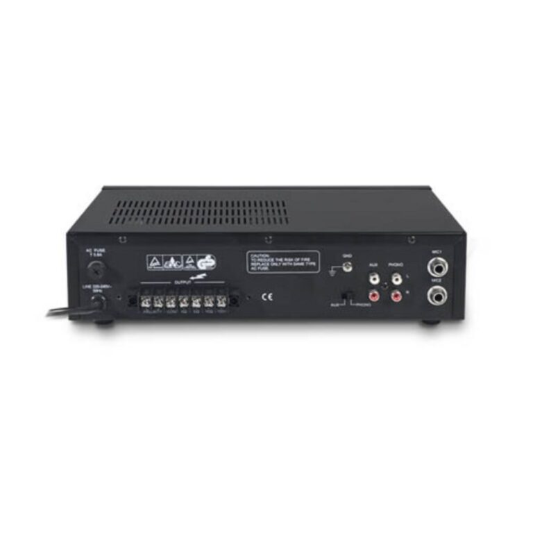 • Input/Output Connectors: MIC: 2x JACK 6.3mm – PHONO: 1x RCA L/R – AUX: 1x RCA L/R