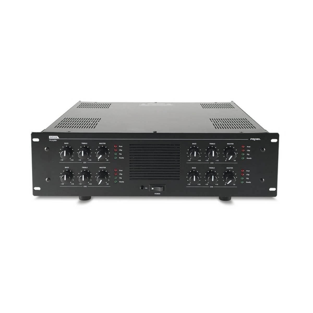 L’ AUP4150/4250R è stato specificatamente progettato per la trasmissione di annunci e/o programmi musicali in tutti i sistemi PA.Ciascuno dei quattro amplificatori finali presenta le seguenti caratteristiche: