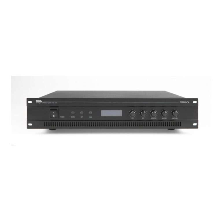 Unità principale per conferenza, permette la gestione senza operatore di sala di conferenze di piccolo e medio taglio, i partecipanti hanno la possibilità di ascoltare con estrema facilità lo svolgimento del dibattito tramite gli altoparlanti monitor presenti sulle postazioni microfoniche.