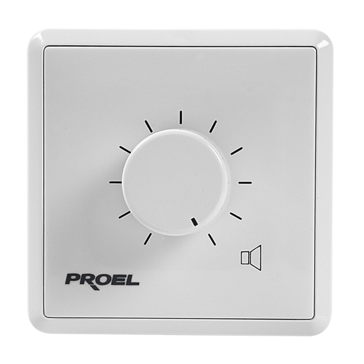 Attenuatore di volume ad incasso su 11 posizioni per linee a 100V. Trasformatore da 50W – Per incasso su scatola quadra europa. Completo con relè bypass 24Vdc.