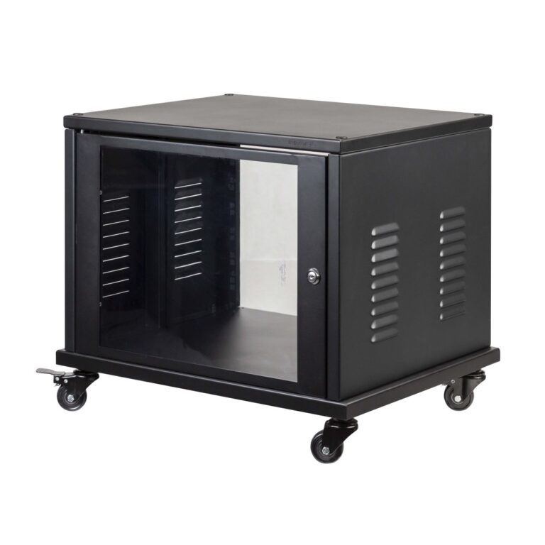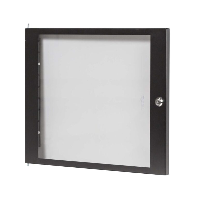 Porta anteriore ad 8U, realizzata in plexiglass con telaio in acciaio, design moderno e altamente tecnologico. La copertura frontale è un’utile protezione da polvere ed accessi indesiderati alle attrezzature. Il nuovo sistema di cerniere rende questo articolo adatto ai supporti della serie “STUDIORK” e “STUDIORKXL” e permette di applicare e rimuovere la porta in plexiglass, semplicemente azionando le cerniere a molla presenti all’interno del telaio. E’ inclusa una chiusura di sicurezza con chiave.