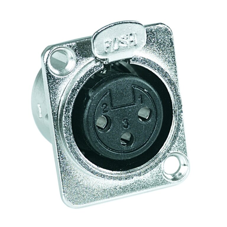 Presa da pannello XLR in alluminio 3 poli con push, a saldare. Colore: Nichelato.